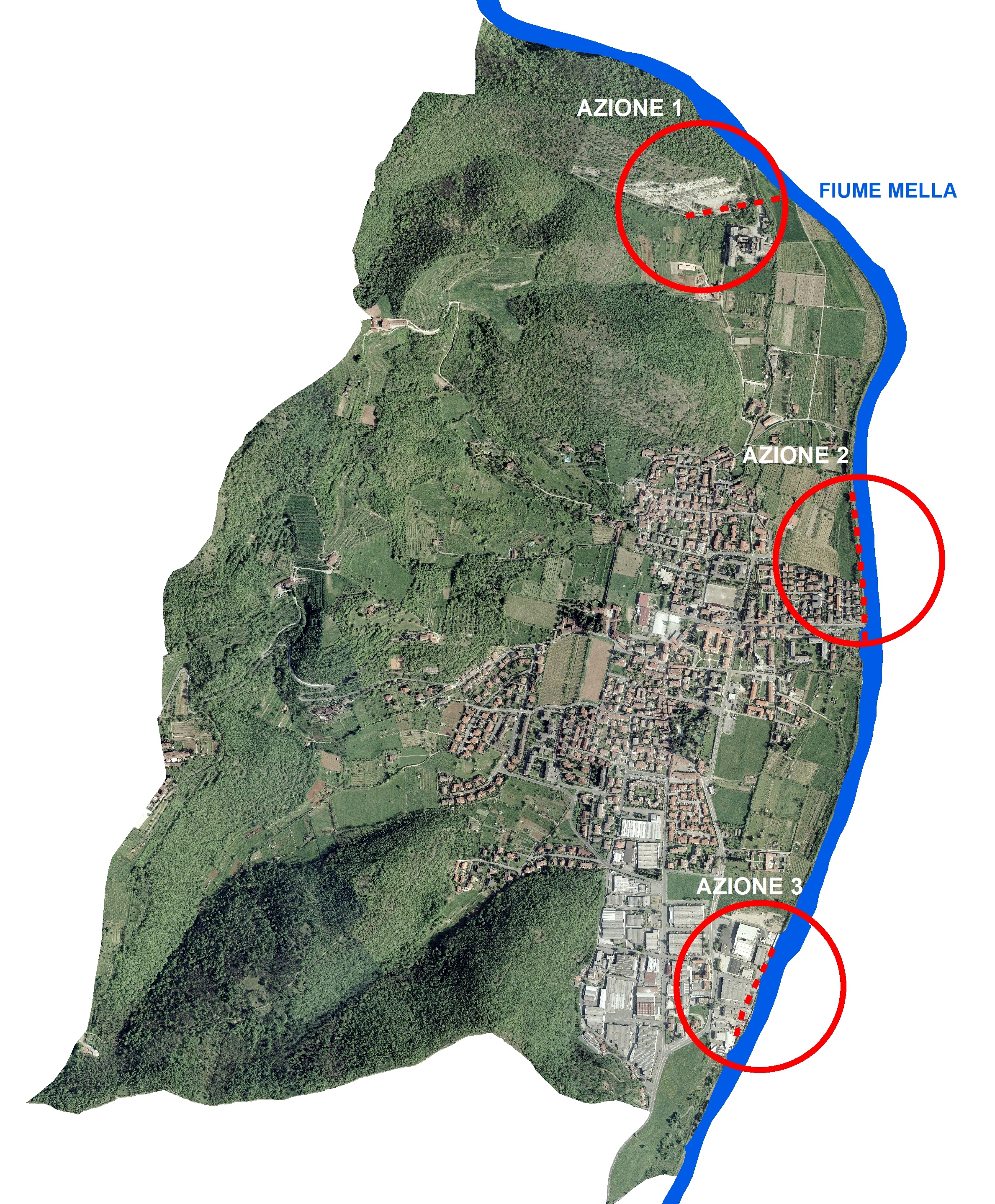 Il progetto interviene su tre siti strategici per riconnettere una fascia di territorio perifluviale lungo tutto il confine est del comune, pari a circa 3,35 km. Oltre a ciò l'intervento porterà a connettere il sistema ambientale fluviale con quello boschivo collinare. Sono previsti interventi di ripristino della continuità attraverso ecodotti accompagnati dalla rinaturalizzazione di tratti critici (per dimensione e caratteristiche) della sponda fluviale: